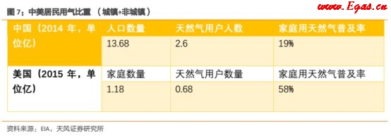 居民天然氣消費擁有很大的潛力,因為目前只有小部分城市居民可使用天然氣。根據國家統計局數據,中國不到20%的人口可使用管道天然氣,而美國的這一數字達58%。隨著可支配收入和生活水平的提高,越來越多的居民出于便利性和清潔性而傾向于使用管道天然氣。