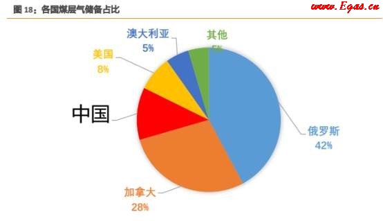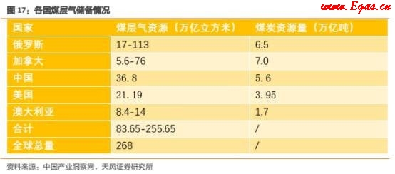 全球煤層氣儲量達268萬億立方米,目前已有74個國家發現蘊藏有煤炭資源,其中90%分布在12個產煤國家,儲備量前五的國家分別是:俄羅斯、加拿大、中國、美國和澳大利亞。