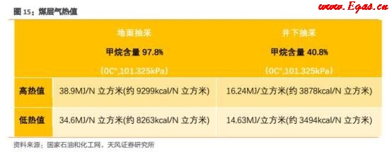煤層氣是指儲存在煤層中以甲烷為主要成分、以吸附在煤基質顆粒表面為主、部分游離于煤孔隙中或溶解于煤層水中的烴類氣體,是煤的伴生礦產資源,屬非常規天然氣,是近一二十年在國際上崛起的潔凈、優質能源和化工原料。煤層氣或瓦斯的熱值跟甲烷(CH4)含量有關,與其他燃料相比較,其熱值是通用煤的2-5倍,1立方米純煤層氣的熱值相當于1.13kg汽油、1.21kg標準煤,其熱值與天然氣相當,可以與天然氣混輸混用,而且燃燒后很潔凈,幾乎不產生任何廢氣,是上好的工業、化工、發電和居民生活燃料。煤層氣熱值具體如下表所示: