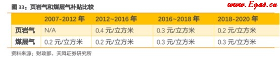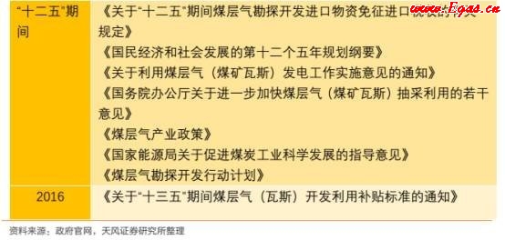 十三五規劃對煤層氣的中央財政補貼標準由0.2元/立方米提高到0.3元/立方米,十三五規劃對頁巖氣的補貼政策為:前三年0.3元/立方米,后兩年降至0.2元/立方米,并且山西、陜西、河南、四川等煤層氣大省均對煤層氣開發實施省內補貼,山西、陜西、河南抽采利用補貼為0.1元/立方米,貴州抽采補貼0.15元/立方米,利用補貼0.2元/立方米,可見十三五期間對煤層氣的補貼力度將大幅高于頁巖氣。