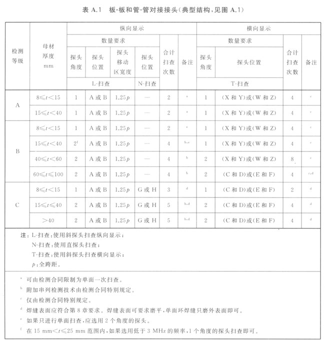 備種類型焊接接頭的檢測等級,見圖A.1~圖A.7和表A.1~表A.7。