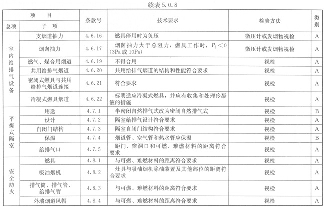 5.0.8燃具安裝應按表5.0.8的規定進行檢驗。