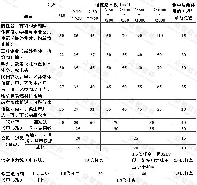 2 與本表以外的其它建、構筑物的防火間距應按現行國家標準《建筑設計防火規范》GB 50016執行;