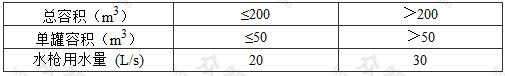 2 總容積小于50m3且單罐容積小于等于20m3的液化天然氣儲罐或儲罐區,可單獨設置固定噴淋裝置或移動水槍,其消防水量應按水槍用水量計算。