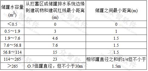 2) 當儲罐未采取防止措施時,V不應小于防護墻內所有儲罐的總容積;