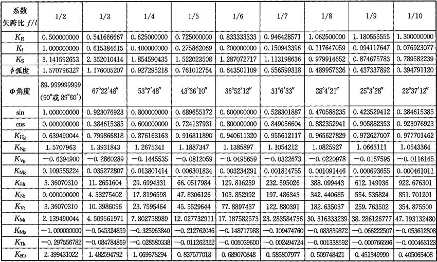 KR、Kf、KS——拱形管道計算系數,應按表C.0.1的規定取值。