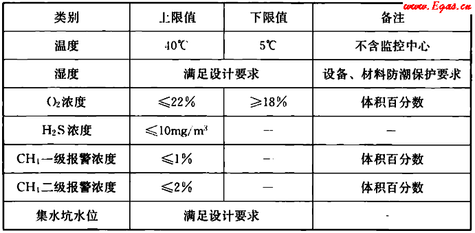 5.6.4 環境與設備監控系統環境參數檢測內容、報警設定值應符合現行國家標準《城鎮綜合管廊監控與報警系統工程技術標準》GB/T 51274和《密閉空間作業職業危害防護規范》GBZ/T 205的規定。主要環境參數報警設定值應符合表5.6.4的規定。