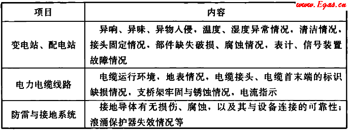 5.4.4 供電系統的巡檢項目和內容應符合表5.4.4的規定。