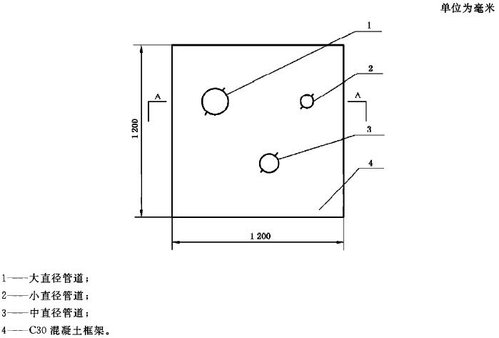 A.3 管道貫穿標準試件的安裝方式如圖A.3所示。