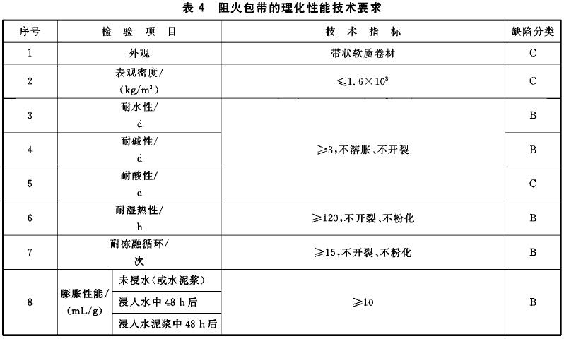 5.3.3 阻火包帶的理化性能應符合表4的規定。