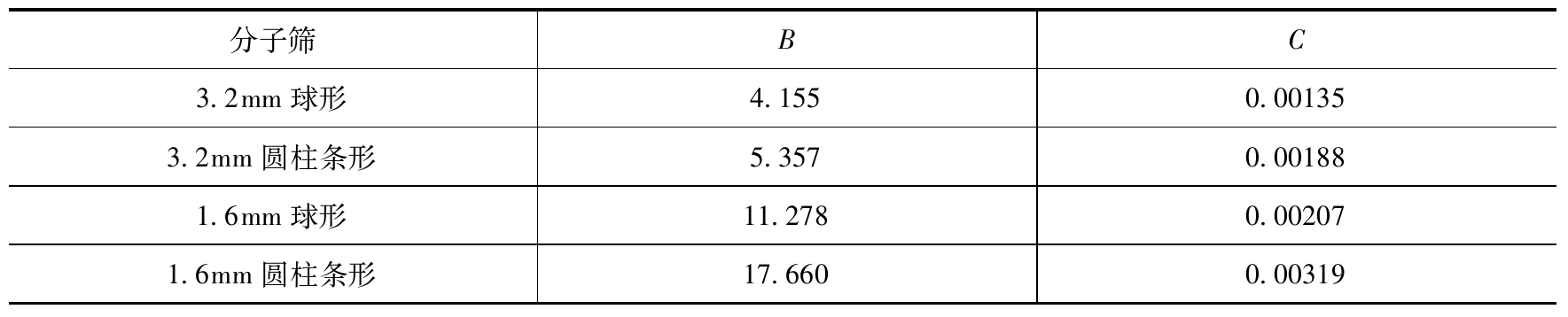 Dp——分子篩的平均直徑(球形)或當量直徑(條形),m;