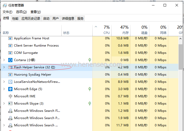 今天教大家直接刪除這個廣告。 等下次彈出來的時候,鍵盤快捷鍵Ctrl+Shift+Esc打開任務欄管理器,找到FlashHelperService.exe這個進程,右鍵結束進程。