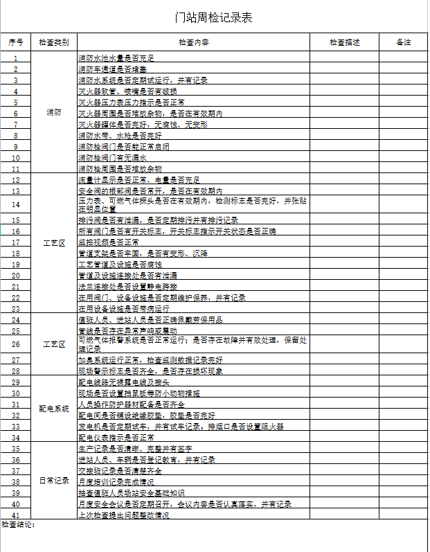天然氣門站、CNG母站檢查記錄表 摘 要 天然氣門站、CNG母站檢查記錄表 天然氣門站、CNG母站檢查記錄表,本表為論壇群友早期提供,最近要清理論壇,轉發到本頻道,感興趣的下載查看 在線下載列表 會員下載需要E點:0 群友會員無限制下載 文章導航 贊 賞 分享 您可以選擇一種方式贊助本站 支付寶轉賬贊助 微信轉賬贊助 注解:本資料由會員及群友提供僅供閱讀交流學習,不得用于商業用途! 網站VIP會員無限制下載網站資料!贊助網站獲得,點擊贊助!! 2024年鏈工寶全國安全生產月知識網 2024年鏈工寶全國安全生產月知識網 《先導式安全閥》國標/T 28778—20 市場監管總局關于印發《市場監管系 < 上一篇 加氣站氣源調度工作流程 下一篇 > 消防設施檢查記錄表 文章導航