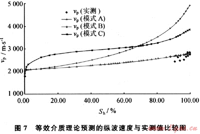 在固結沉積物實驗中,筆者發現低飽和度的水合物(飽和度小于10%)對聲速影響不明顯的現象,這種現象也被不同學者所捕捉[19~20]。經上述分析后認為,水合物在沉積物孔隙流體中形成,對聲速影響不大,可能是造成這一現象的原因。而當水合物膠結沉積物顆粒時,其對聲速的影響則可能成倍增長,如在松散沉積物中,微量的水合物(飽和度1%左右)即可使縱波速度增長200~300m/s。可見,在天然氣水合物的資源評價中,了解水合物的微觀分布同樣具有重要的作用。