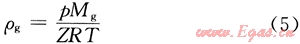 泡沫中的氣相不是理想氣體,采用非理想氣體狀態(tài)方程描述壓力、溫度和氣體密度之間的關(guān)系: