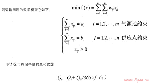 其次,確定上游氣源到目的地的最小運輸耗時。由于長輸管道因某種外部因素(地震,泥石流等)破壞導致無法輸配燃氣,必須依靠其他途徑運輸至城市內部(水運,陸運等)。可以通過建立線性規(guī)劃方程算出在滿足供氣量等于用氣量的情況下,從各氣源地運輸至城市供應點的最少必要時間。