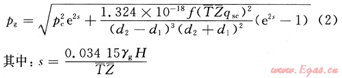 對于上部純氣體段的流動狀態可認為是霧流,可以根據天然氣干氣井井底流壓的計算方法計算氣柱產生的壓力[5]。即