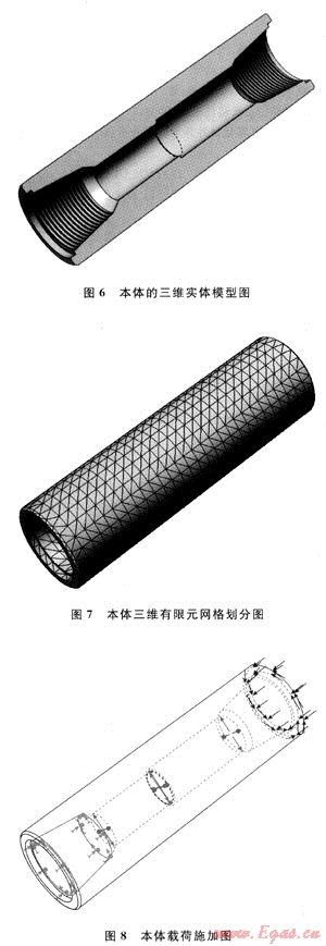利用SolidWorks三維CAD軟件,得到的本體的三維實體模型(見圖6),利用COSMOS/Works自動劃分網格,建立有限元模型(見圖7、8)。劃分好的有限元模型與實體模型基本吻合,無“贅余”與“凹陷”,劃分較為準確。