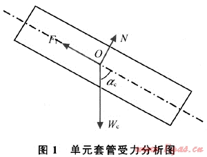 在大斜度井中,對斜井段常規下入法套管單元受力分析(見圖1),下套管作業時井口載荷為[6]: