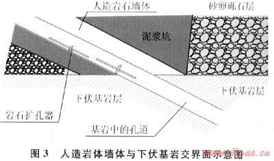 對制作“人造巖體”材料的配制比例進行適當調整,可以消除“人造巖體”與下伏基巖之間存在的強度變異系數,從而減小或消除因強度不同形成的DL值,而且“人造巖體”四周基坑可作為泥漿存儲坑,從而減小了施工作業場地的占地面積。