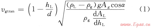 式中:ρ為密度;hL為液面高度;d為管徑;A為面積;v為速度;α為管線傾角;g為重力加速度。