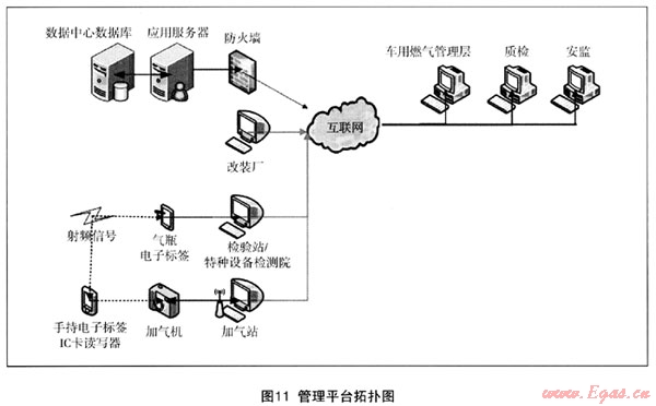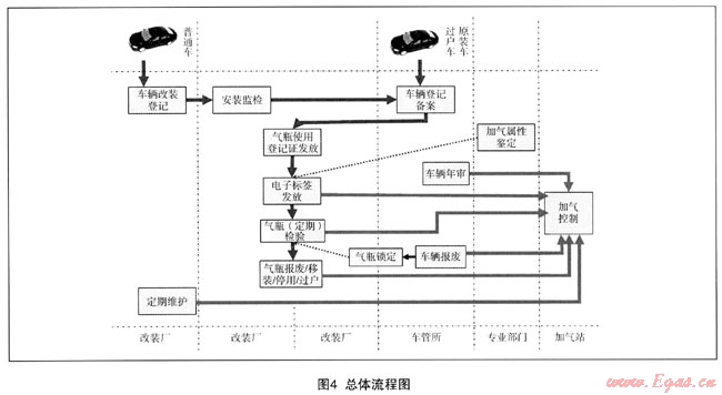 該系統可實現改裝信息、氣瓶信息、檢驗信息、車輛信息和加氣信息的集成,實現對CNG改裝車輛的實時監控;實現對CNG車輛加氣前的身份識別,打擊非法改裝、杜絕給不合格車輛和氣瓶加氣,如圖2。