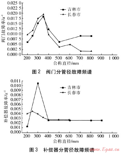 ② 閥門和補(bǔ)償器的分管徑故障率