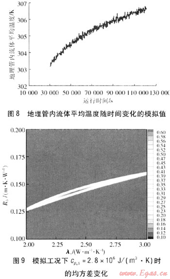 由圖2~4、9~11可知,均方差最小值的區域基本固定,其對應的λs在2.4W/(m·K)左右。因此,可以得出結論,在實際過程中即使存在一些不確定因素的影響,得到的模擬值與理論值存在一定的偏差,但是經過參數估計處理得到cp,s的變化對結果的影響也很小,cp,s偏差±12.5%對λs的影響在±2%左右。通常情況下cp,s的獲得可以依據現場鉆孔中心巖土分析來確定,相對誤差一般在±5%以內,對λs的影響更小。