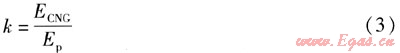 式中k——CNG發動機與汽油機單位體積混合氣理論含有能量之比[14]