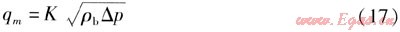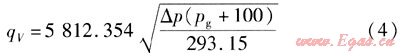 將數據qV=3000m3/h,ρn=1.293kg/m3,L=273.15K,pg=5kPa,p0=100kPa,pn=101.32kPa,t=20℃,△p=0.74377kPa代入式(12),可求得:K=4025.3021。