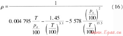 過熱蒸汽不同于理想氣體,不能通過理想氣體狀態方程來計算其密度,只能用以溫度和壓力為自變量的近似公式來計算其密度。式(16)是過熱蒸汽密度計算式之一[9]41。