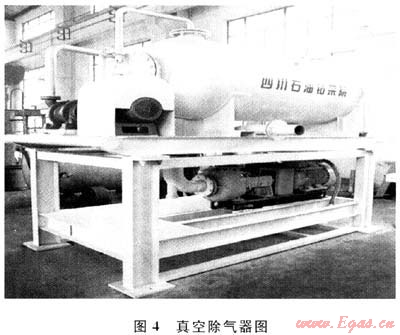 在鉆井作業過程中,地層中的氣體往往會侵入到鉆井液中,形成大量的大小不等的氣泡。在密閉系統中,四相分離器只能清除體積較大的氣泡,對于溶解在鉆井液中的微小氣泡卻難以清除,而這些微小氣泡會造成鉆井液密度降低、黏度升高、流動性變差,從而影響了鉆井液的性能。為了維護鉆井液的性能,在密閉系統中配置密閉式鉆井液緩沖罐及真空除氣器(圖4)。鉆井液緩沖罐主要作用是使鉆井液流速平穩滿足真空除氣器的工作要求。真空除氣器的作用是清除四相分離器無法分離的微小氣泡。川慶鉆探工程公司鉆采工藝技術研究院研制成功的ZCQ2/3真空式除氣器已在塔里木迪那區塊和川渝地區鉆井中得到成功的使用[4]。該除氣器用于密閉系統時,需對密封等機構進行防硫改造以滿足密閉系統的要求。