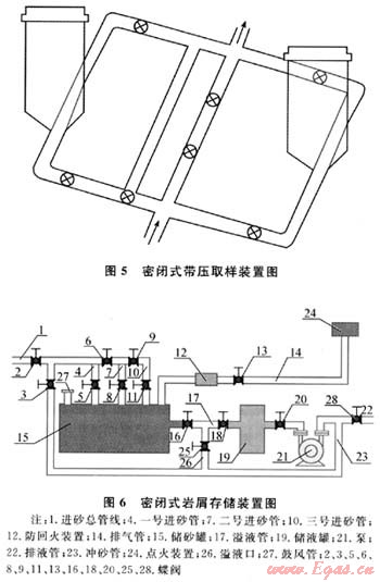四相分離器分離出的固相顆粒沉淀在罐體內部,很難進行即時地質取樣。因此,在四相分離器之前需配置密閉式帶壓取樣裝置。為實現巖屑的連續取樣,取樣裝置包括兩個取樣筒,這兩個筒可以進行交替取樣。