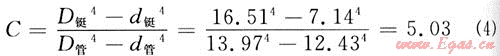 該井無磁鉆鋌及下斯倫貝謝工具長為38.69m,本體最小外徑為165.1mm,以該段最小外徑為165.1mm計算與Φ139.7mm篩尾管剛度比值(C)。
