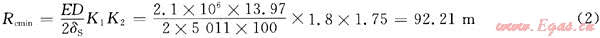 計算結(jié)果92.21m=Rcmin<Rhmin=109m,說明Φ139.7mm篩尾管能下入本井全角變化率最大井段。