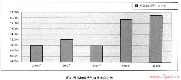 表1 2004年—2008年我國四大區域的燃氣普及率