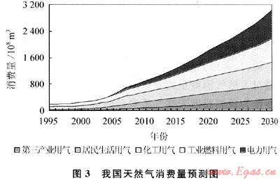 2003年以來,我國的天然氣消費年增長率都維持在15%以上,遠高于以前6.4%的平均水平。從年增長率的趨勢來看,我國天然氣消費仍將快速增長。