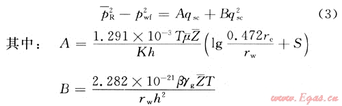 1) 當測試流量達到相對穩定狀態以后,不同測量時距下的re可看作不再變化,壓差(△p)也不再變化,根據二項式穩定產能方程得:
