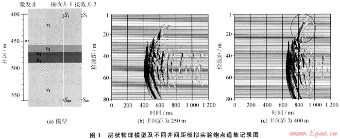 從應用的角度看,井間距越大所研究的井間介質橫向范圍越大,因此井距越大越好。從理論上來講,井間距越大地震波傳播的路徑越長,能量穿過介質被吸收衰減得越多,對井下震源的要求也越高,實現起來越困難。