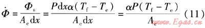 式中Ф——微元出與環(huán)境間的傳熱量,W