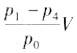 要實(shí)現(xiàn)BOG儲(chǔ)罐的儲(chǔ)氣功能,可在BOG儲(chǔ)罐儲(chǔ)氣時(shí),將閥門V1關(guān)閉,在BOG儲(chǔ)罐泄放氣體時(shí),將此閥門打開,則此BOG儲(chǔ)罐可儲(chǔ)存一定量的氣體。如圖2所示,如果LNG儲(chǔ)罐的BOG減壓閥的設(shè)定啟動(dòng)壓力為p1,正在工作的LNG儲(chǔ)罐(與正在泄放BOG的儲(chǔ)罐應(yīng)該不是同一儲(chǔ)罐)內(nèi)氣體的工作壓力為p2,閥門V1下游的壓力(供氣調(diào)壓器之前的壓力)為p3,供氣調(diào)壓器的出口設(shè)定壓力(城市管網(wǎng)的供氣壓力)為p4,大氣壓力為p0,儲(chǔ)罐的容積為V,忽略BOG儲(chǔ)罐內(nèi)的溫度對(duì)其儲(chǔ)氣量的影響,則BOG儲(chǔ)罐可儲(chǔ)存的標(biāo)準(zhǔn)狀態(tài)下的BOG氣體體積為
