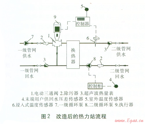 程實例,探討了熱力站改造方案和供熱系統的調節方式。