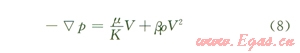 式(7)~(8)中V表示氣體滲流速度,m/s;K∞表示Klinkenberg滲透率,mD;μ表示氣體黏度,Pa·s;b表示與巖石結構及氣體分子平均自由程相關的系數,亦稱Klinkenberg系數,MPa;ρ表示密度,kg/m3;β表示Forchheimer系數,m-1。