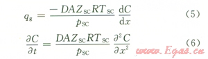 式(5)~(6)中qg表示擴散流量,m3/s;D表示擴散系數,m2/s;A表示面積,m2;ZSC表示標準狀況下氣體壓縮因子,無量綱單位;R表示通用氣體常數;TSC表示標準溫度,℃;pSC表示標準壓力,MPa;C表示摩爾濃度,kg/m3;t表示時間,s。