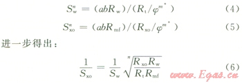 上式中σt經常又用深側向電導率來代替。Swd、Swf分別為粒間孔隙系統和裂縫系統的飽和度;φd為粒間孔隙度;md為粒間孔隙系統的膠結指數;nd、nf分別為粒間孔隙系統和裂縫系統的飽和度指數;σmf為鉆井液濾液電導率;