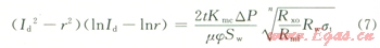 不難看出式(6)已經消除了可變膠結指數的影響,進一步證明了“當其他條件不變時,鉆井液濾液侵入地層的深度主要受泥餅滲透率和地層的孔滲特性兩方面因素的控制,這點與非裂縫性砂泥巖地層比較類似”的觀點是經得起推敲的。再將式(6)帶入式(3)可以得到: