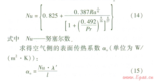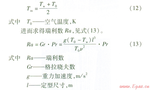 由于翅片管為立式安裝,故此處自然對流換熱計算選用豎壁準則關聯式:
