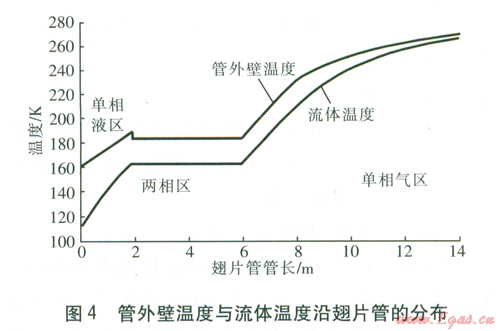 由上述可以看出,以往對AAVs的研究主要集中在空氣側特性的研究,而對LNG這一特定介質的管內氣化過程的換熱研究較少。本文對LNG空溫式氣化器單根翅片管的換熱進行計算,并分析管內的相變吸熱特點。