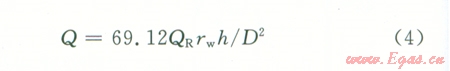 產能模擬法是利用蘇東35-57井儲層巖心,在地層壓力溫度條件下,沿水平方向建立不同的生產壓差,獲得單向滲流條件下的氣相滲流速度,再轉換成徑向滲流條件下的單井產能[8-10]。設實驗室巖心氣體流速為QR,巖心滲流面積為A,單井日產氣量為Q,有效厚度內氣體滲流面積為2πrh,D為試驗巖心的直徑。則可得: