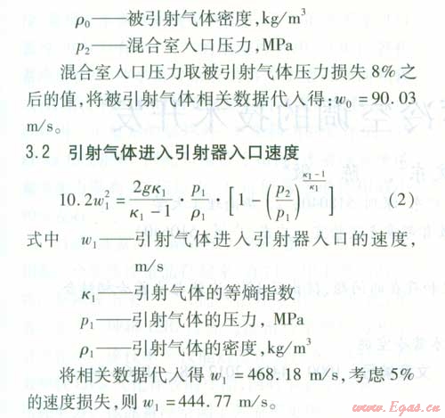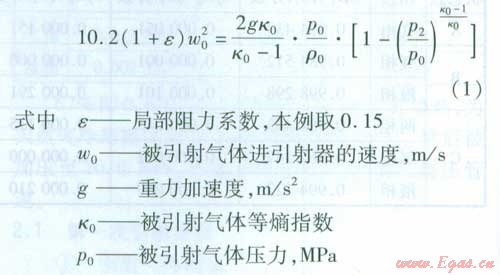 1.000 kmoL/h的天然氣,0.670 kmoL/h的回流氣體及0.199 kmoVh的被引射氣體,共l.869 kmol/h的混合流體,經計算其組成及相關參數見表4狀態點C。